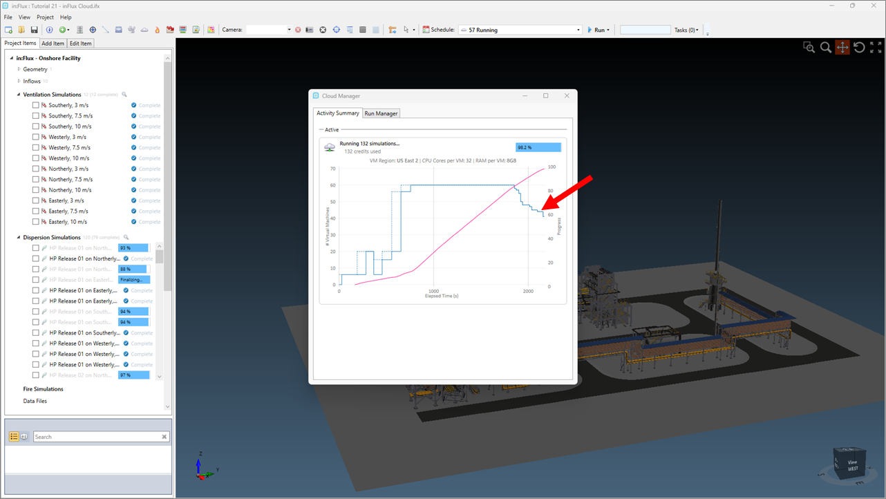 Tutorial 21 - Figure 11 - After completion of ventilation cases, the number of virtual machines increases to run the dispersion cases in bulk